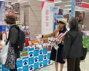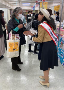 イベントでは、全国各地の農林水産物の展示・販売が行われ、藤井大使には富山県ブースにて、富富富はもちろんチューリップやあんぽ柿など、富山県の特産品をPRしてもらいました☺