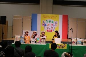 開場前から多くのお客様にお越しいただき、富山の食を楽しむ皆様の姿が嬉しかったです。抽選会では緊張しつつも楽しい時間を過ごせました。何より、富富富のおにぎりを笑顔で召し上がっていただけたことが一番の喜びです。登坂絵莉さん、池田航さんとともに、富山の美味しさと富富富の魅力をこれからも広めていきたいです。