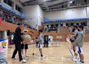 春季ミニバスケットボール大会の閉会式にて、富山米のPRをさせていただきました。